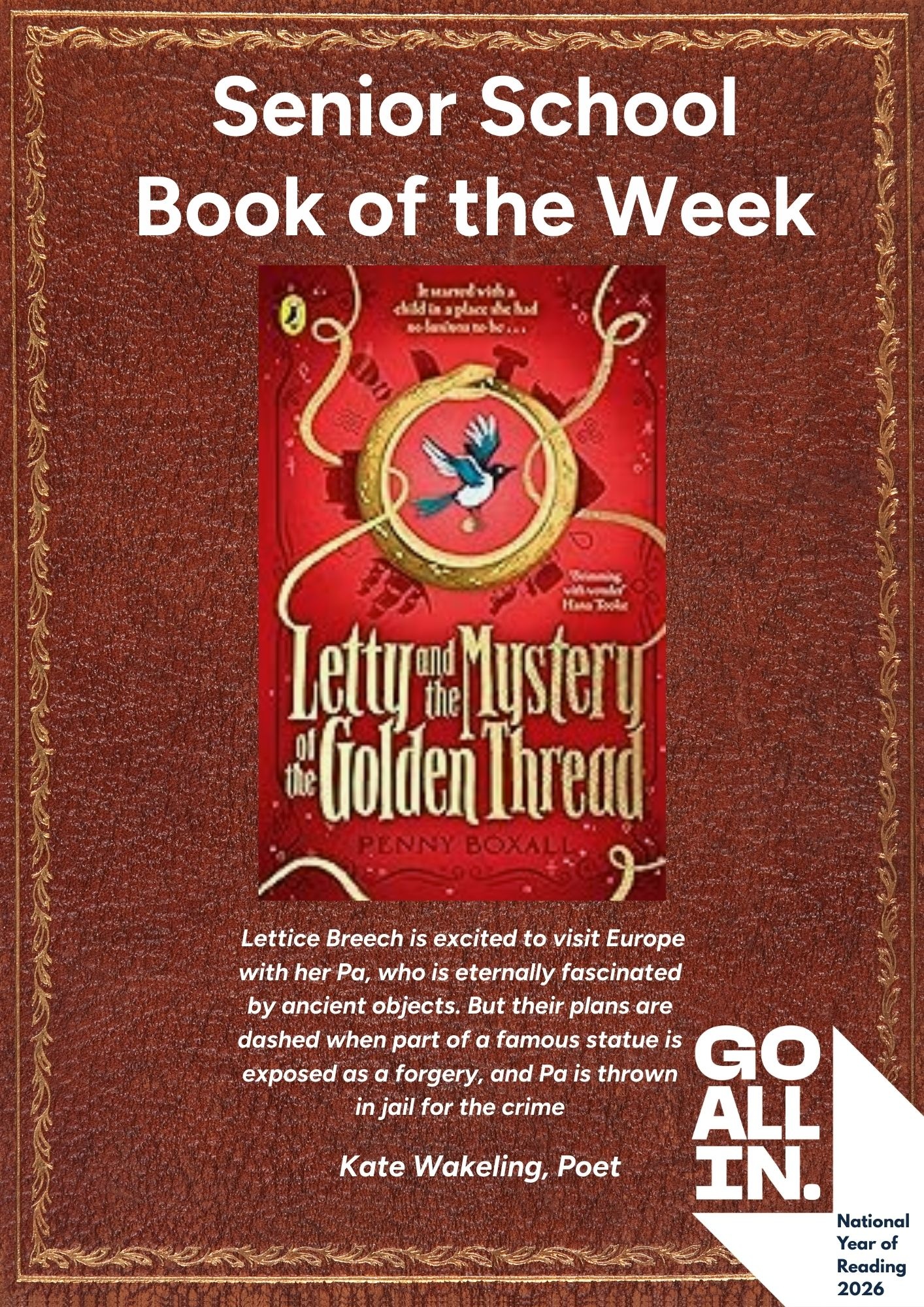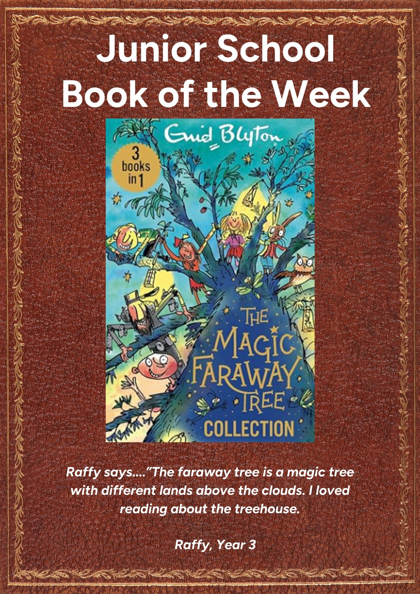 Each week, two boys volunteer to select a new Book of the Week and write a personal review. These are published in the weekly newsletter and also displayed in both the Senior School and the Junior School. A special display is in the library where the chosen books can be found. Every so often our staff also make their own suggestions of books the boys might enjoy!
